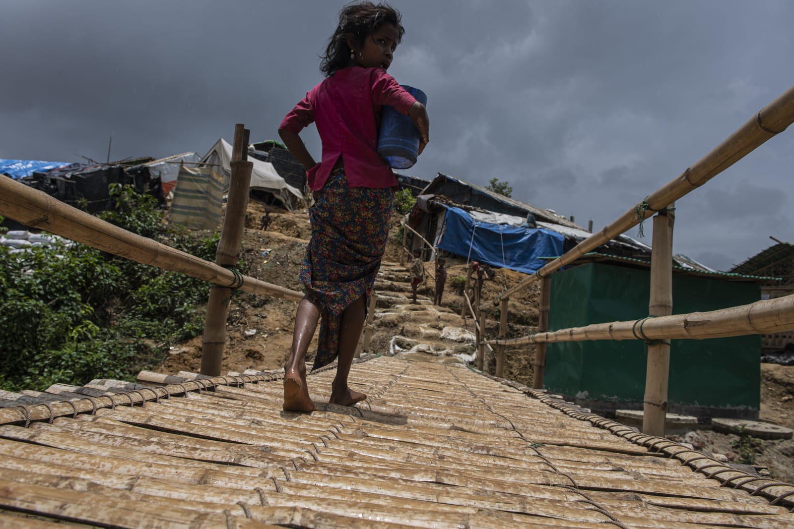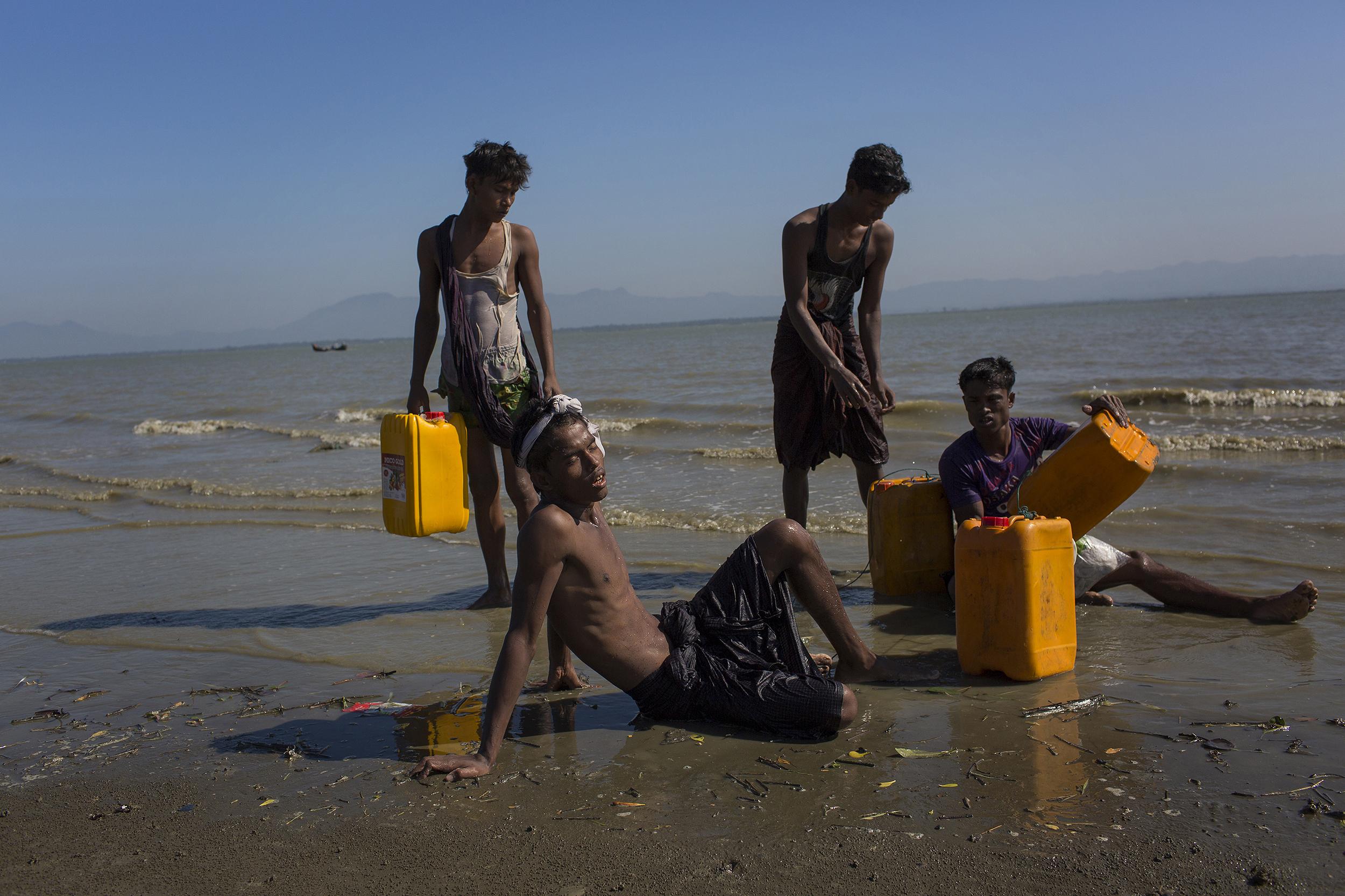 난민들의 생존을 위해 지속적인 물 공급은 필수이다. 대부분 지하수 관정을 통해 용수를 공급한다. 풍족한 물은 이 지역에 유일하게 허락된 자연의 선물이다. 2017년 11월 쿠투팔롱캠프, 방글라데시