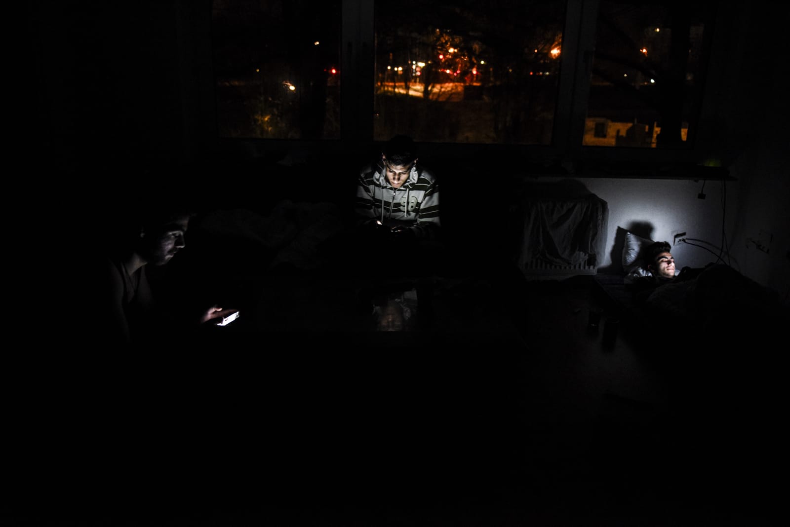 서로에게 의지해 잠을 청하고 있던 난민 커플. 넘쳐나던 난민들과 부족한 수용시설로 레스보스 섬은 도심 내 공원 등에서 텐트를 치거나 누울 자리만 있으면 어디든 허가증 발급까지 대기하는 동안의 임시 거처가 되었다. 2015년 9월 레스보스, 그리스