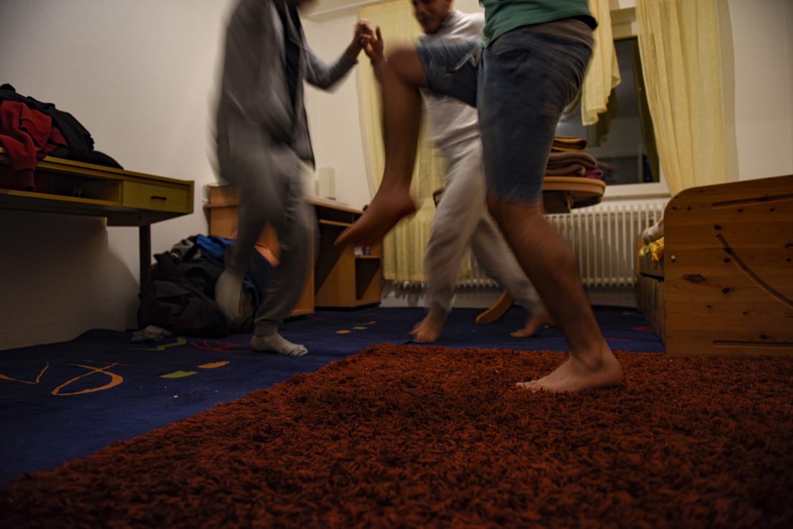 2015년 10월 그들은 독일에 도착했고, 독일 내에 위치한 난민 캠프에 잠시 머물다 마를로 오게 되었다. 마를에 정착하기 시작한 그들은 3개월에 한번씩 갱신을 해야 하는 임시 체류증으로 그들의 신분증을 대신하며 산다. 임시 체류증으로는 일을 하지 못하며, 자원봉사자들이 제공하는 독일어 수업은 주당 10€를 내야 한다. 사정을 모르는 사람이 볼 때 이들의 삶은 나른해 보이며, 태만해 보인다는 오해를 불러 일으키기 쉽다. 하지만 현실에서 그들에게 허용된 활동은 극히 제한되어 있다. A4 한 장으로 복사된 임시 체류증이 이들의 삶을 구속하고 있기 때문이다.더군다나 네오나치들이 난민들을 공격한다는 소식이 간간히 들려와 이들을 더욱 움츠리도록 만든다.