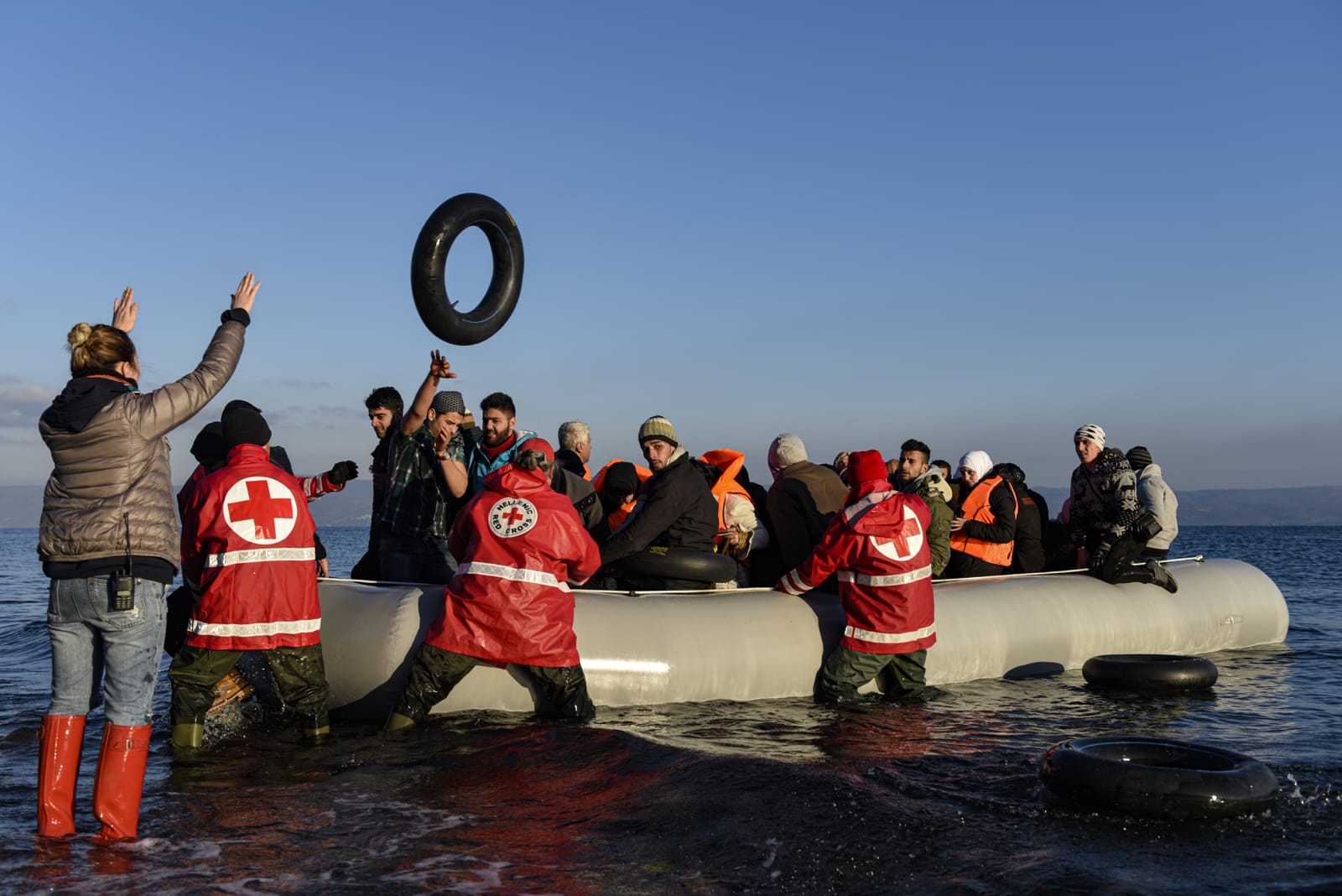 막 건너온 바다를 복잡한 심정으로 바라보고 있는 시리아 난민 가족. 그들을 맞아 주는 건 그들 이전에 도착한 이들이 남기고 간 흔적들 뿐. 이후 이 해안가는 도움의 손길을 주고자 하는 NGO와 자원봉사자들로 북적이게 되었다. 2015년 9월 레스보스, 그리스